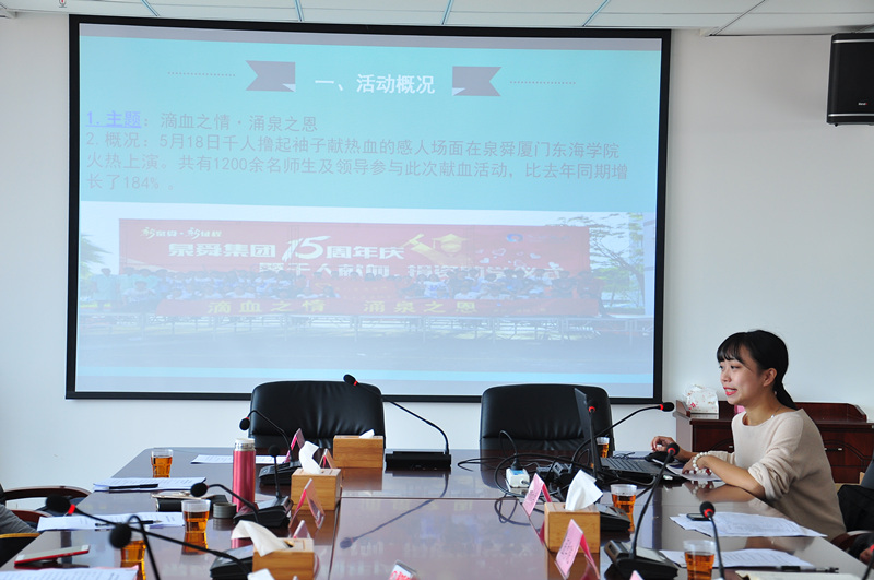 同期威尼斯官网王蓓老师受邀参加厦门市高校无偿献血工作研讨培训班,并与全厦高校教师一起分享威尼斯官网无偿献血工作经验,并提出“与集团周年庆相结合的千人献血活动,是泉舜集团取之于社会、回馈社会的理念所在,也是最好的生日礼物。同时集团对学校连续九年开展的无偿献血活动给予高度的肯定和支持,也是我们不断奉献爱心的动力!”