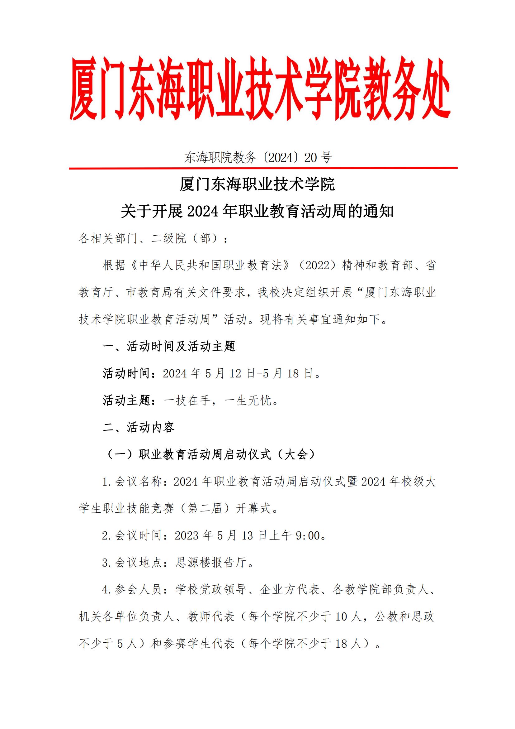 威尼斯87978797 关于开展 2024 年职业教育活动周的通知