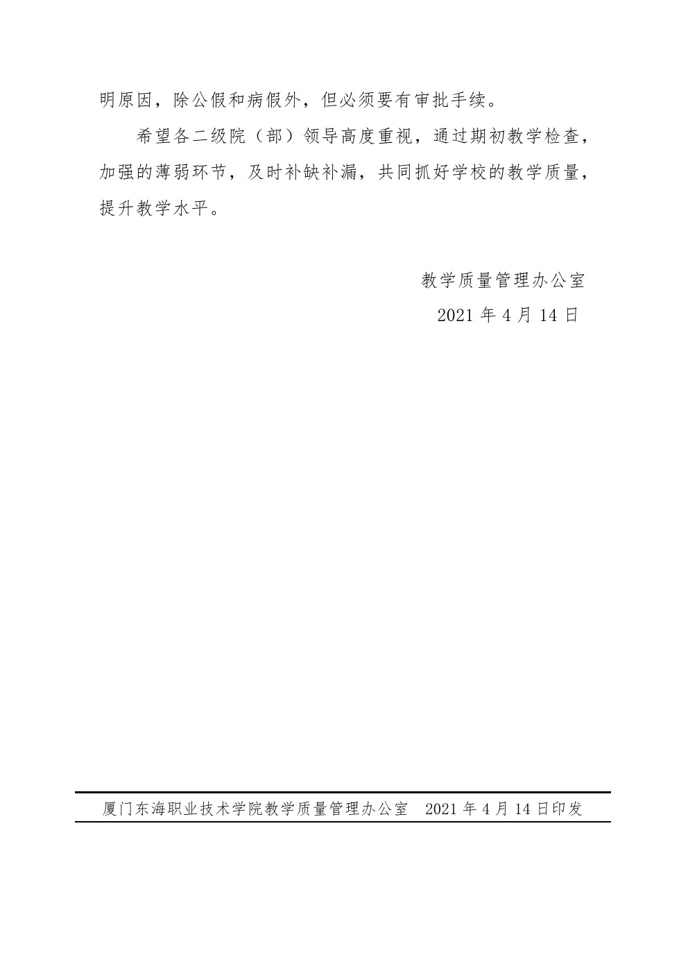 东海职院质管〔2021〕5号 开展2020-2021学年第二学期期初教学检查评比的通知