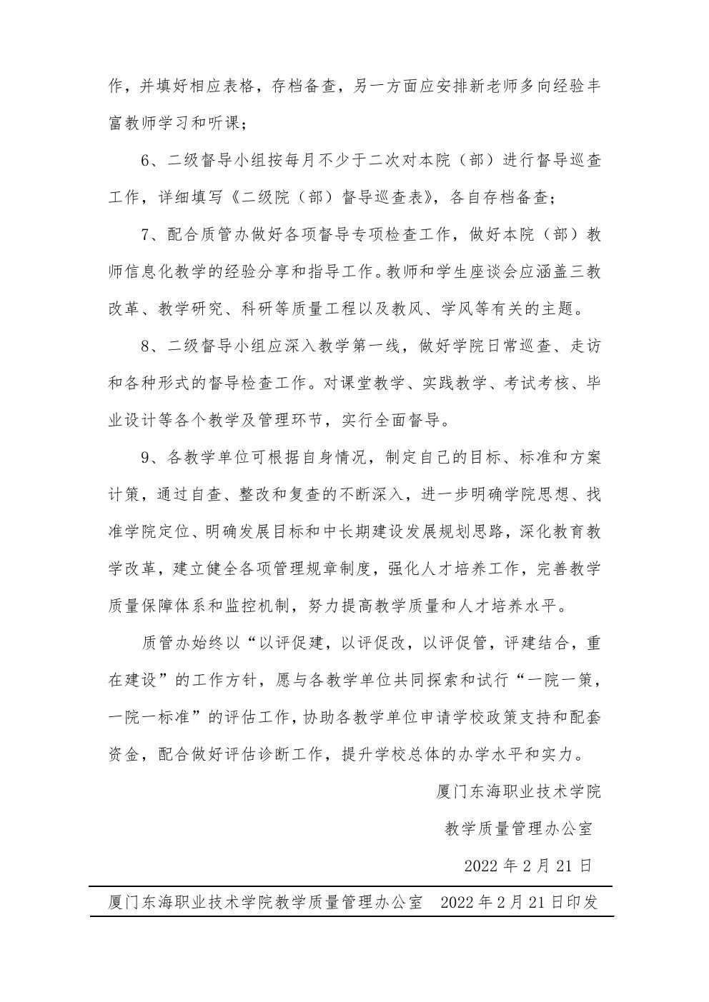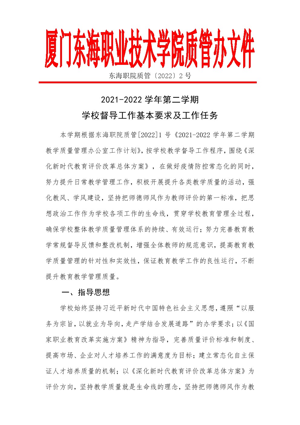 东海职院质管〔2022〕2号 2021-2022学年第二学期学校督导工作基本要求及工作任务