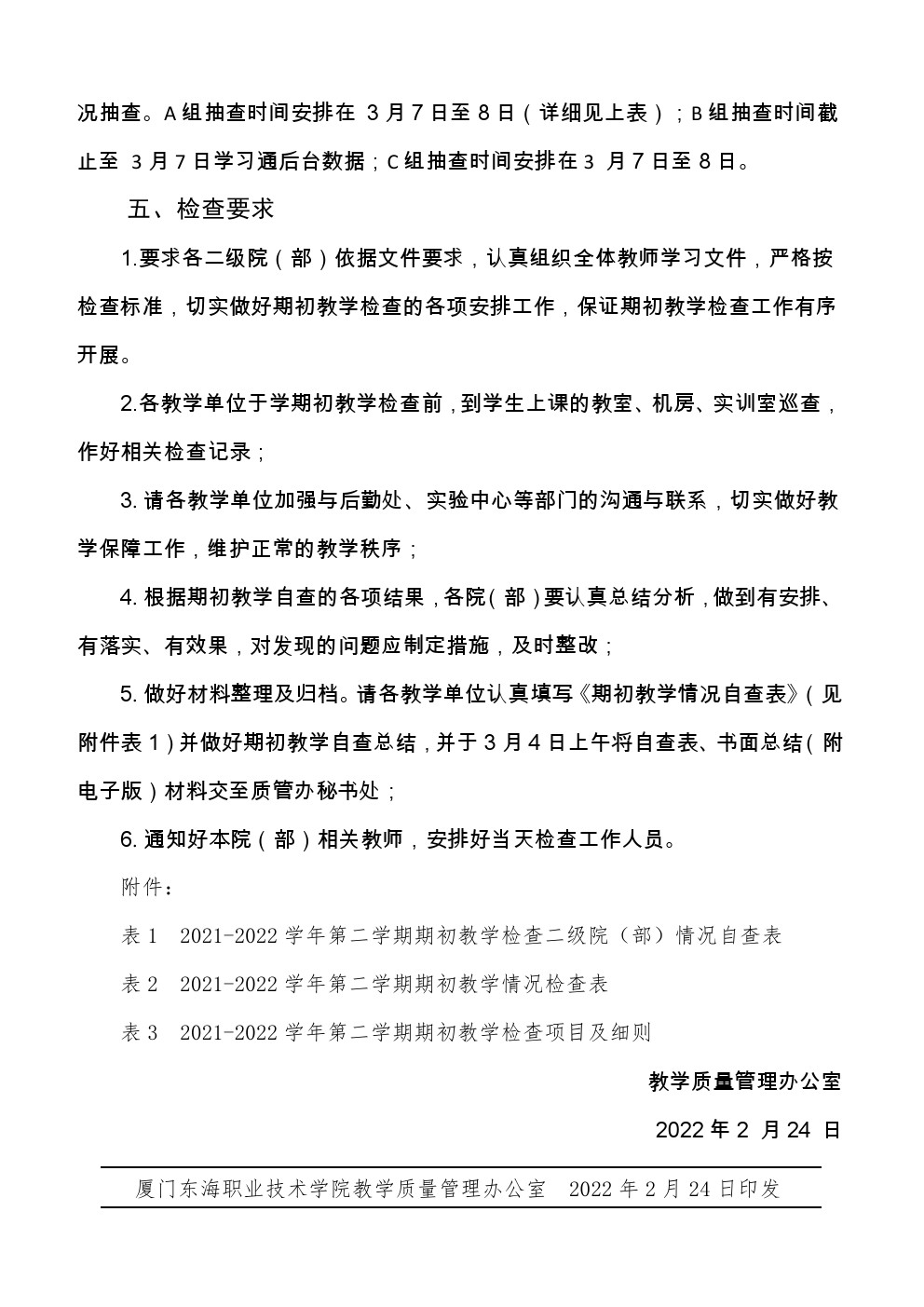 东海职院质管〔2022〕2号 2021-2022学年第二学期学校督导工作基本要求及工作任务
